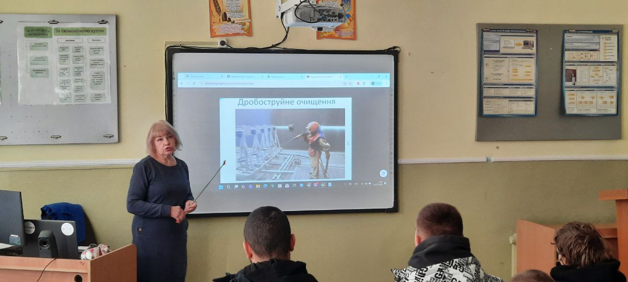 Під час пояснення нового матеріалу викладач застосувала мультимедійну презентацію, що допомогла наочно продемонструвати технологічні операції очищення металу. Особливе враження справили відео професійних дій зварника та власноруч створене викладачем відео, у якому продемонстровано реальні прийоми роботи в навчальній майстерні. Це дозволило поєднати теорію з практикою та зробило навчання більш наочним і доступним.