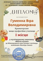 Вітаємо переможців у кулінарному виклику "Магія кухні" до Міжнародного дня кухаря і кулінара викладача Віру ГУМЕННУ і студентку Аліну ЖАРКИХ!